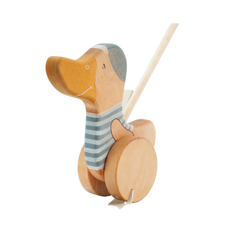 Deze schattige, houten, speelkameraad is de perfecte aanvulling op elke speelgoedcollectie. Het is een duurzaam, handgemaakt, houten duwspeeltuig/duwfiguur in de vorm van een eend die je lekker de hele woonkamer met je mee kunt nemen.
