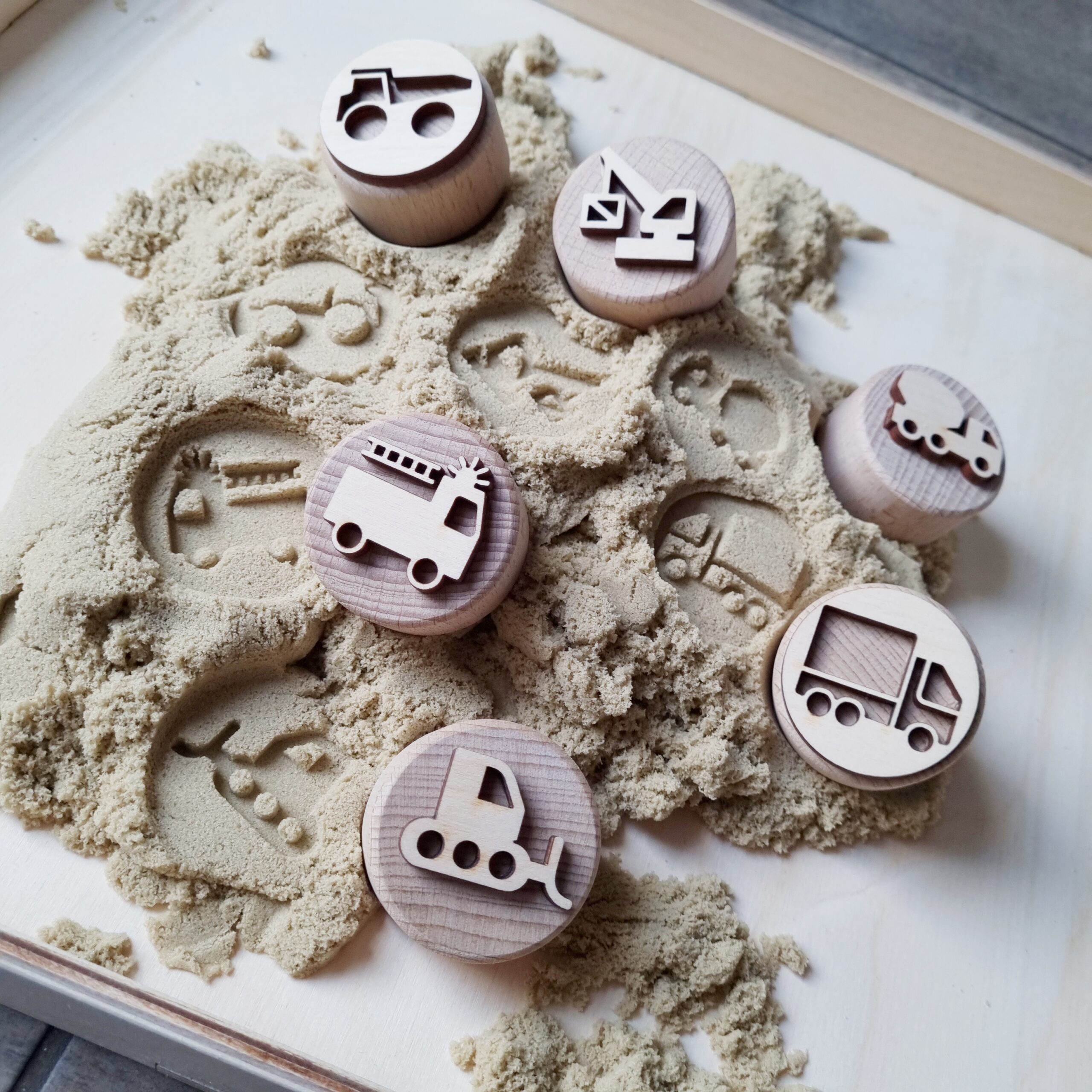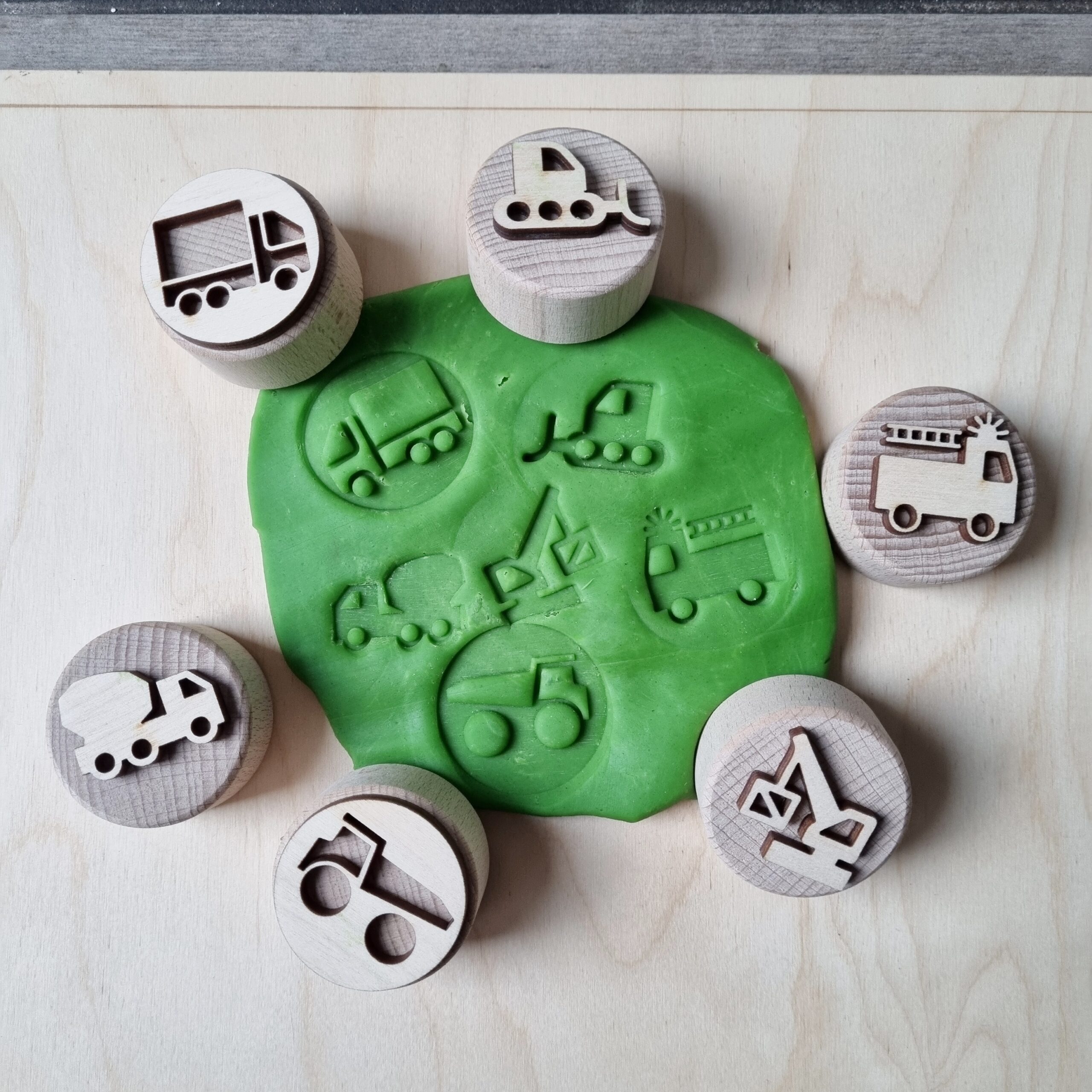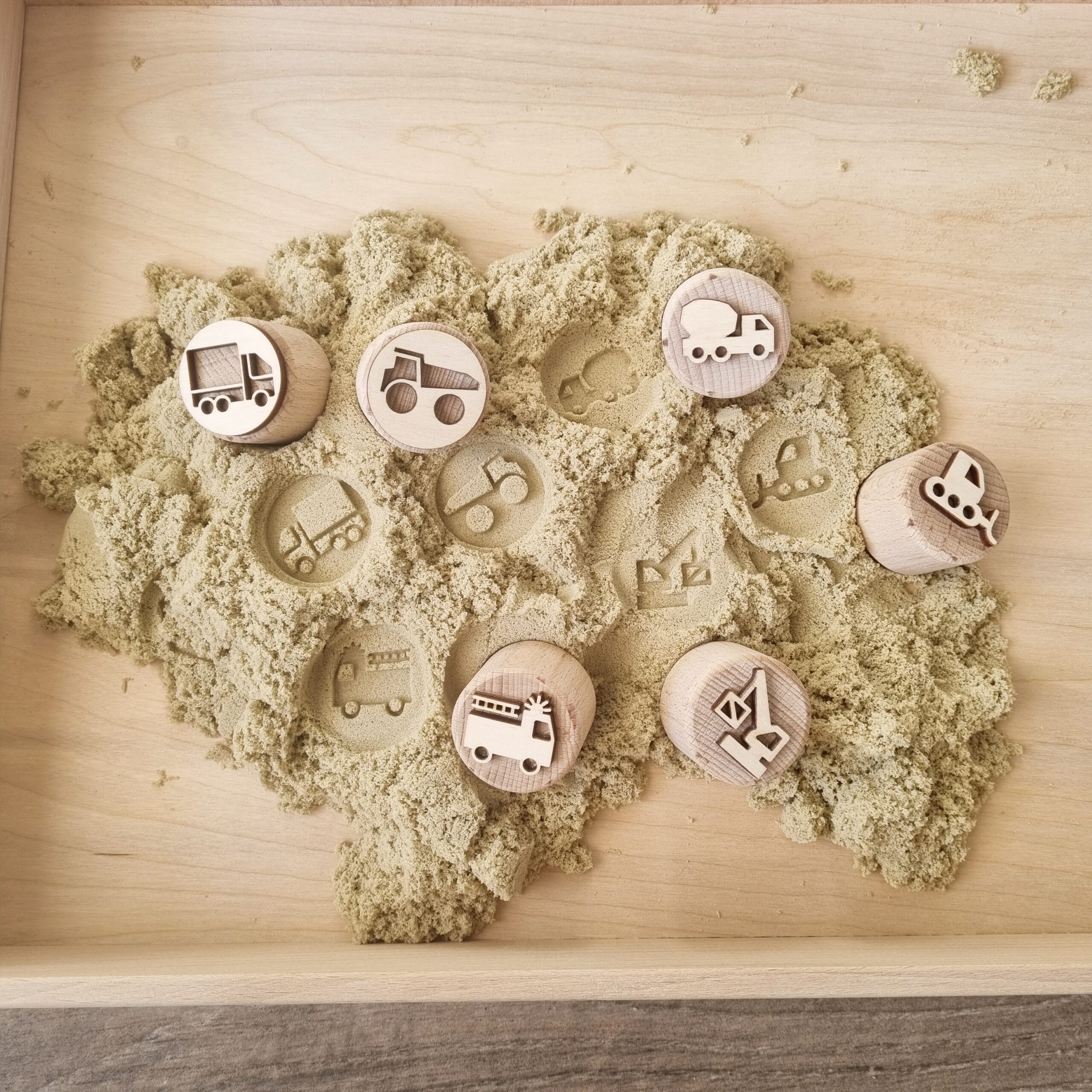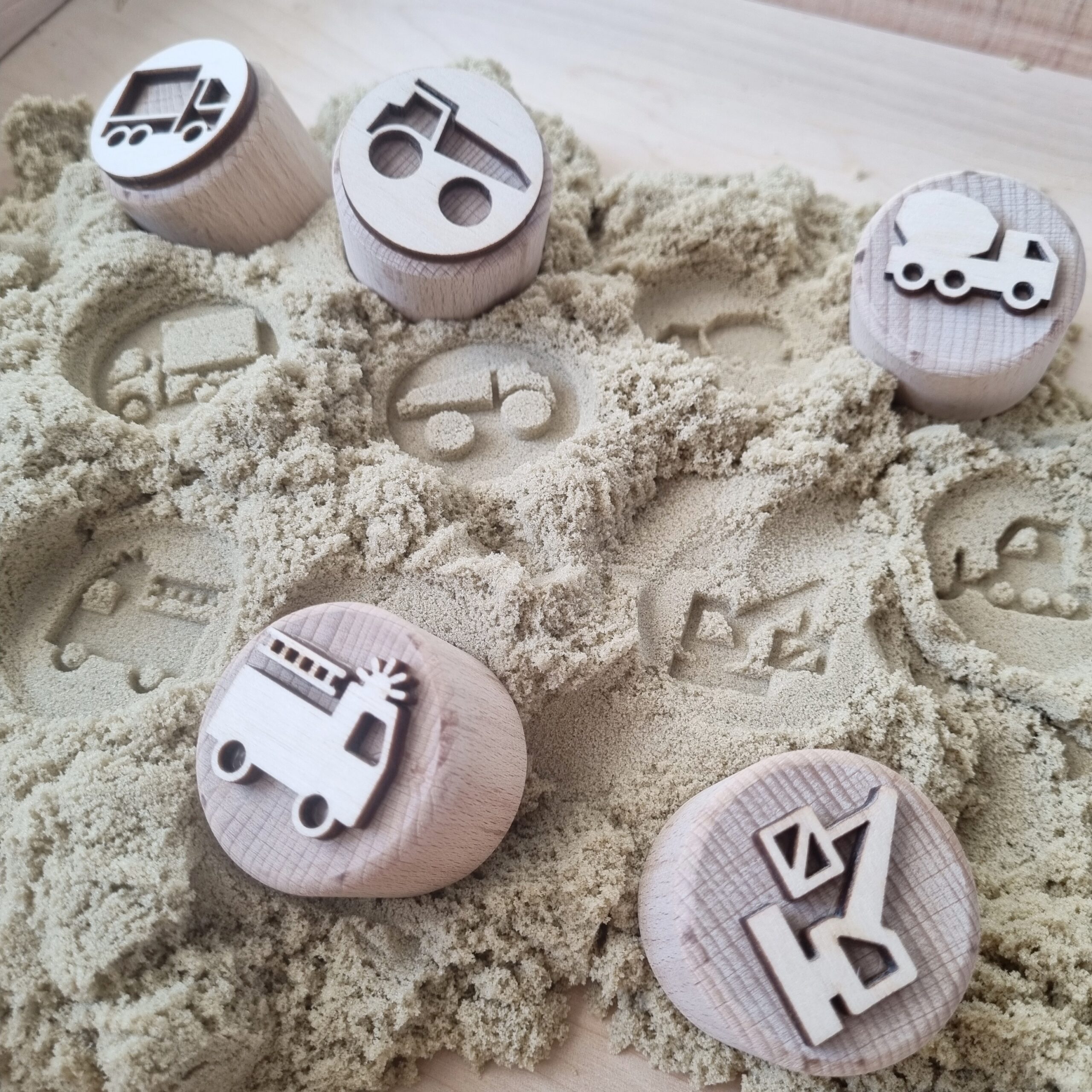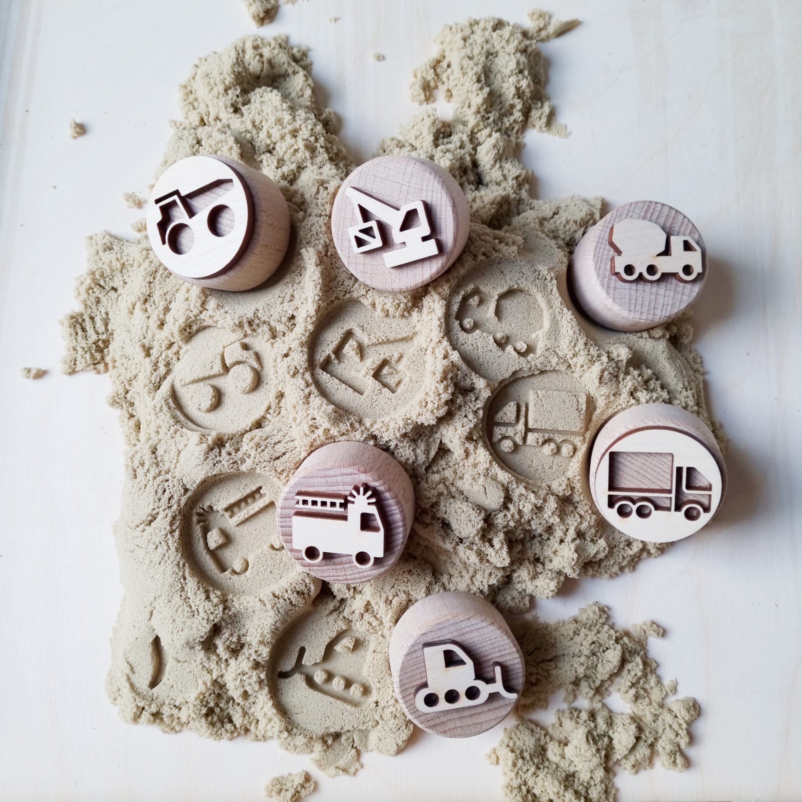 De stempels kunnen worden gebruikt in allerlei zintuigelijke materialen zoals klei, kinetisch zand of zoutdeeg. Perfect voor sensorisch- en open einde spel waarbij kinderen hun handen kunnen gebruiken in het spelen met natuurlijke materialen. Maar ook kunnen zij hun eigen fantasie gebruiken om met de stempels te spelen.