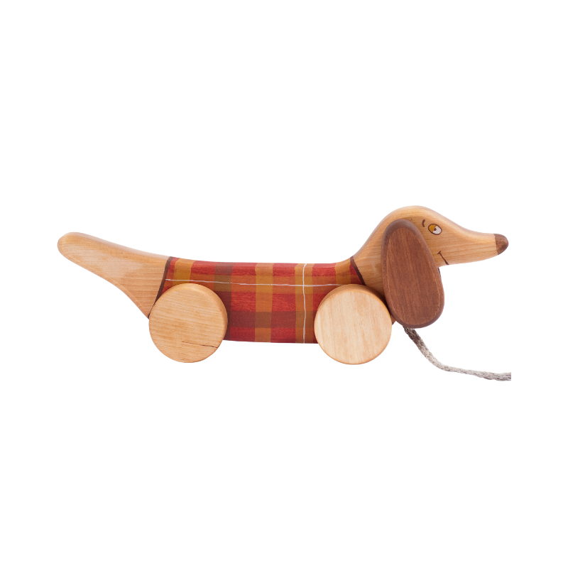 Dit houten trekdier in de vorm van een trouwe viervoeter is gemaakt van natuurlijke materialen. Het trekdier is helemaal met de handgemaakt en beschilderd. Je kunt hem heerlijk achter je aantrekken en meenemen op avontuur, hoe leuk! Het stimuleert niet alleen lopen (grove motoriek), maar ook de fijne motoriek, het logisch denken en je kindje traint de hand-oog coördinatie.
